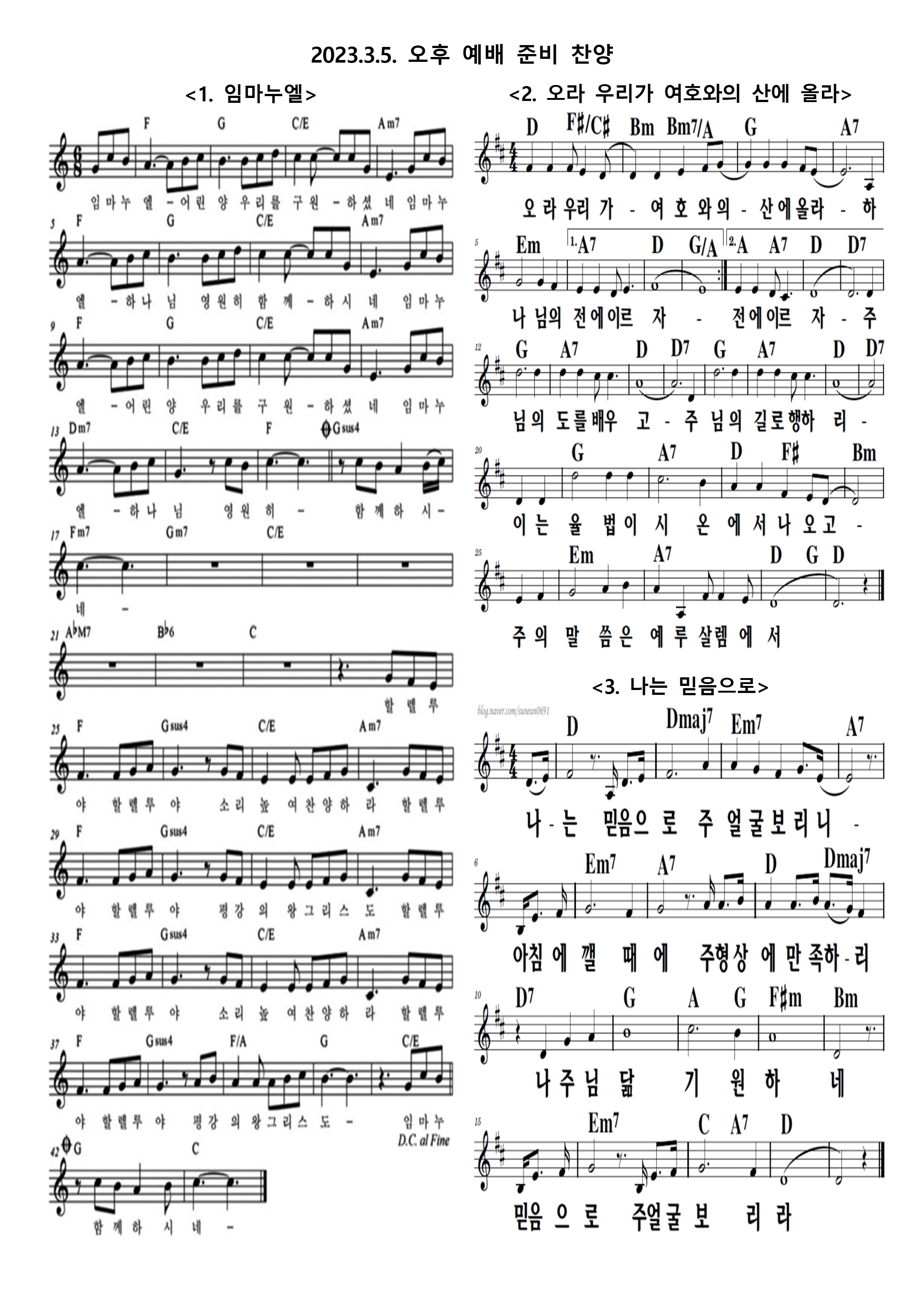 1. 임마누엘(3월 한 달간 여는 찬양으로 고정합니다)