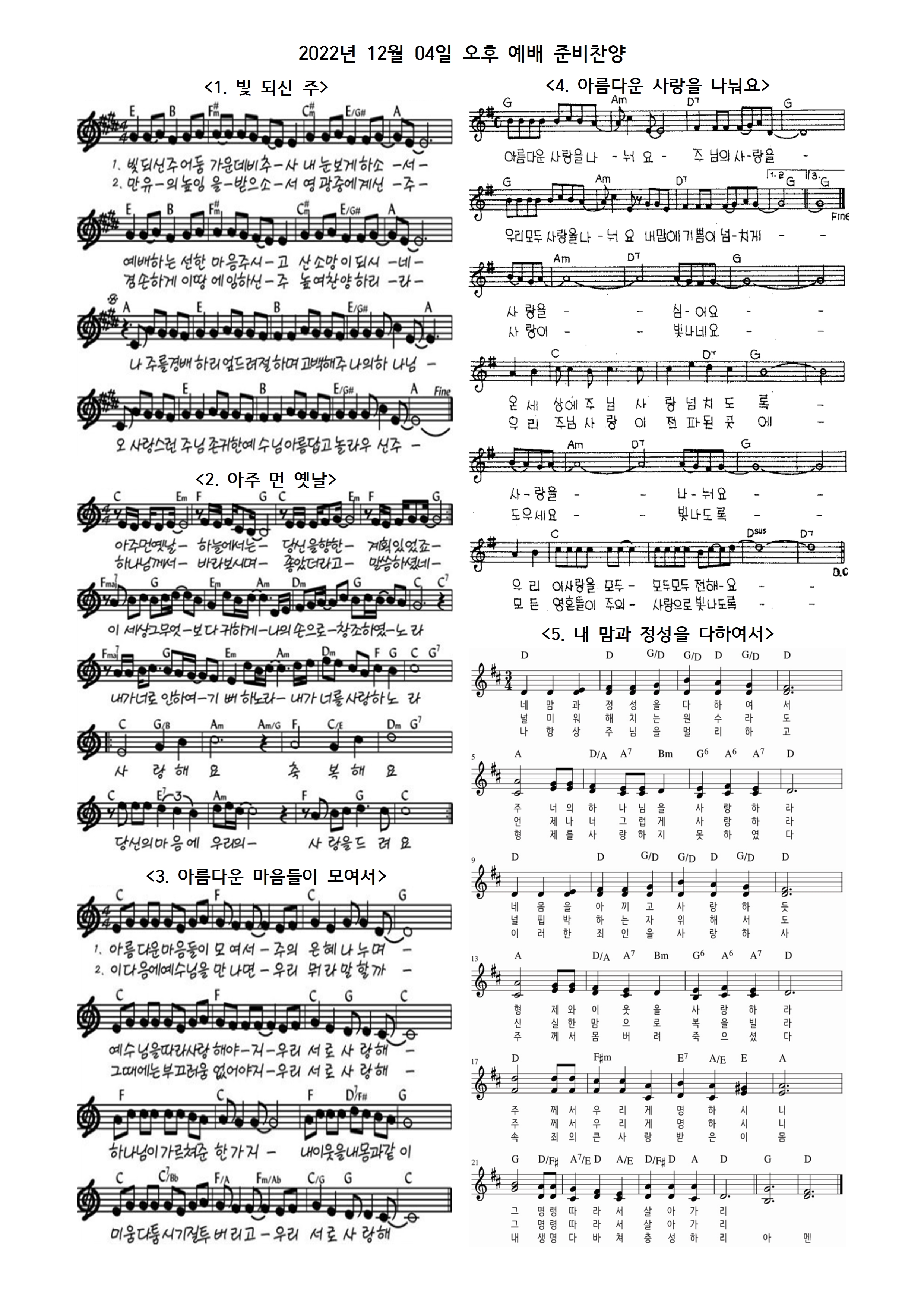 1. 빛 되신 주 E (브릿지는 다음 주에, 이번 주는 악보대로만)