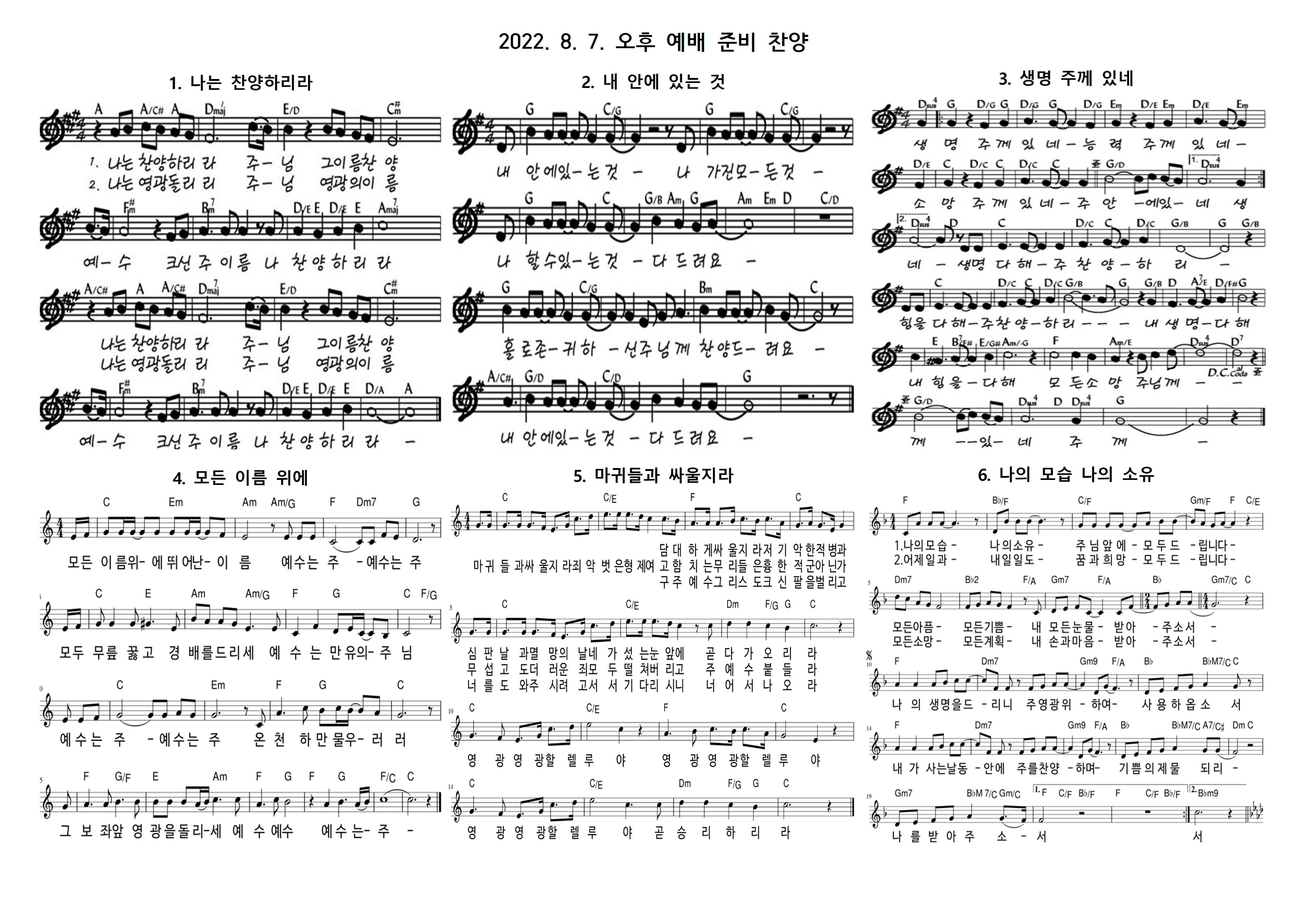 - 2023.08.06 헵시바 찬양단 헌신예배 연습 곡